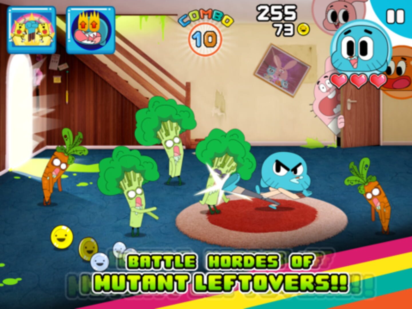 Mutant Fridge Mayhem is an action game set in The Amazing World of Gumball universe where players battle mutated food across 30 levels. Players can switch